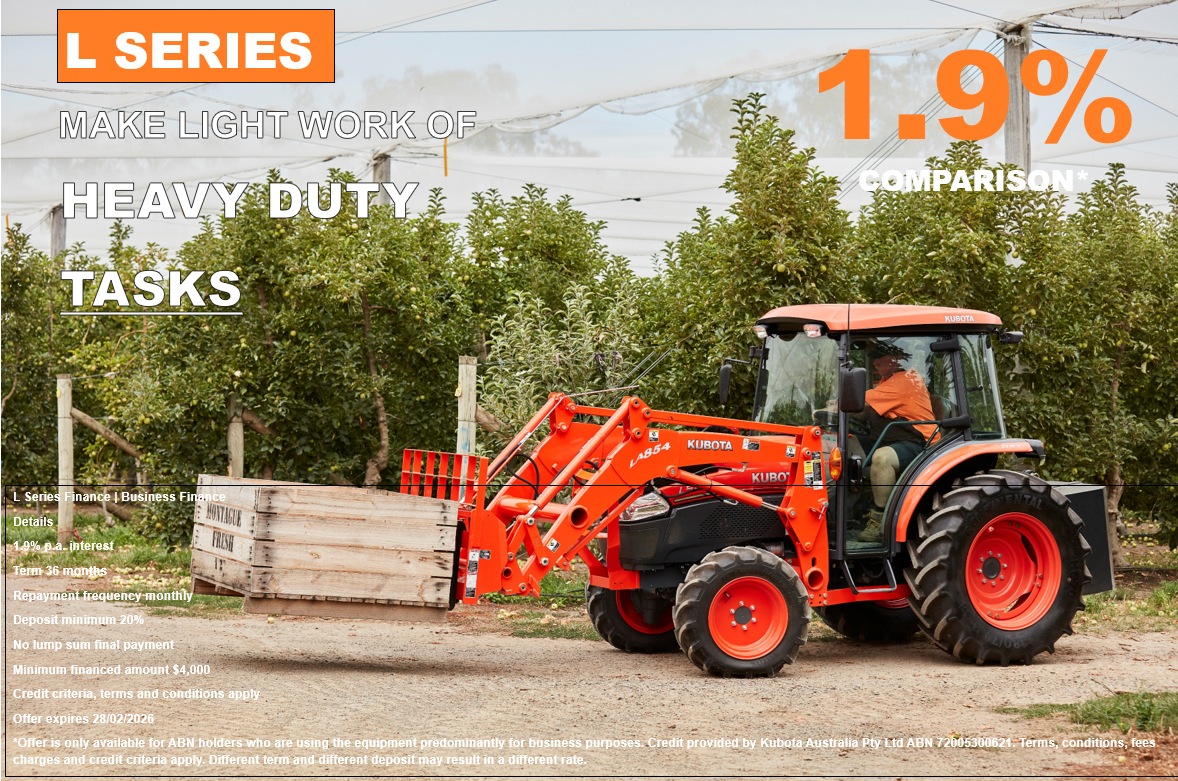 We proudly offer our customers a comprehensive range of farm equipment from more than 20 leading Australian and international brands. Our products include tractors, balers, sprayers, mulchers, slashers, RTVs, generators, implements, excavators, skid steers, mowers, nut harvest equipment, shakers, frost fans, hay equipment and much more.